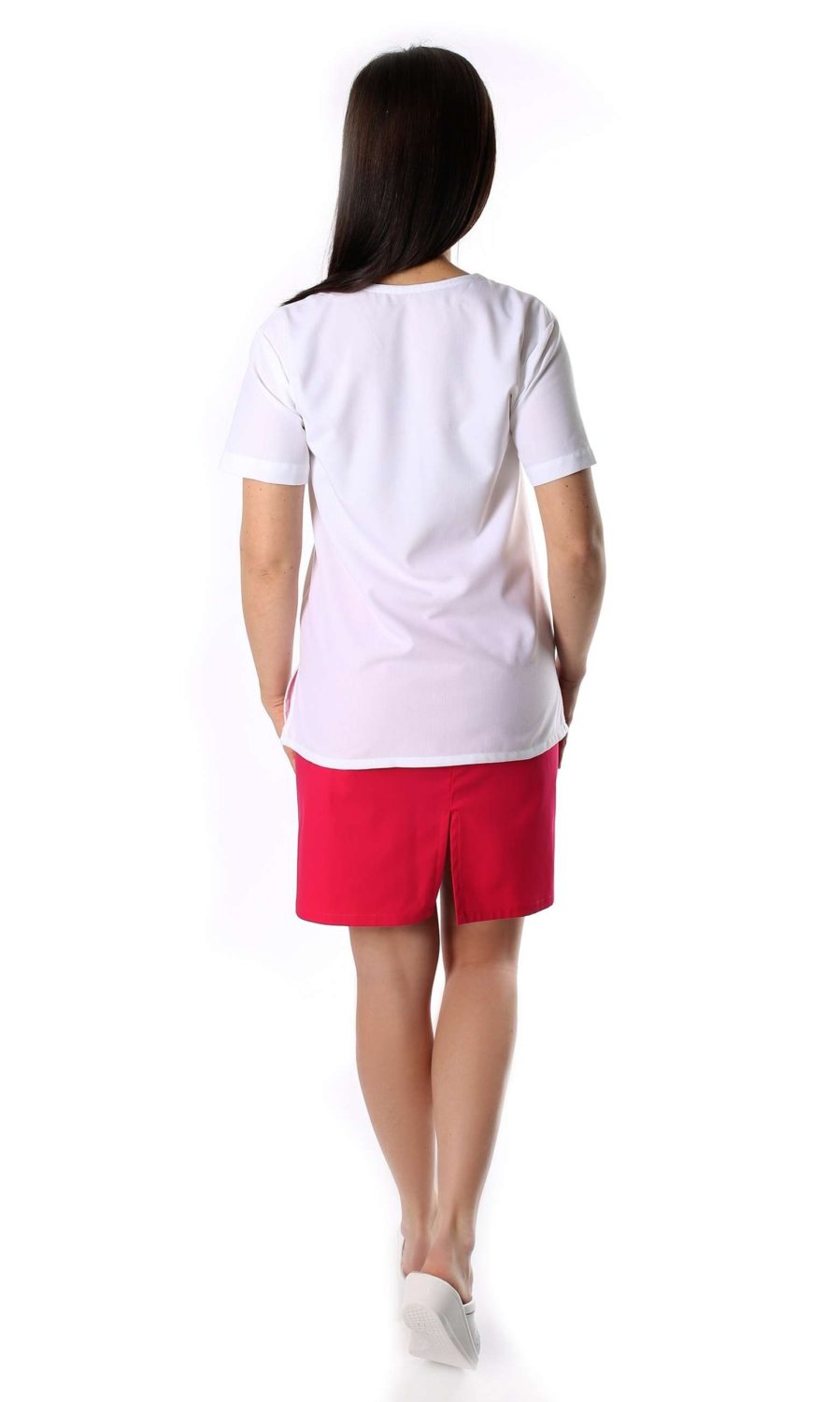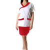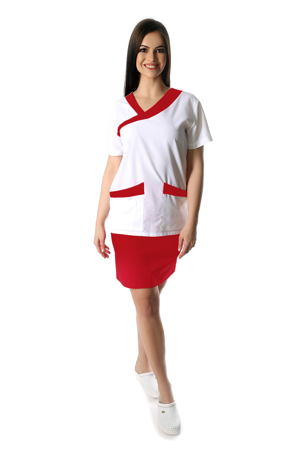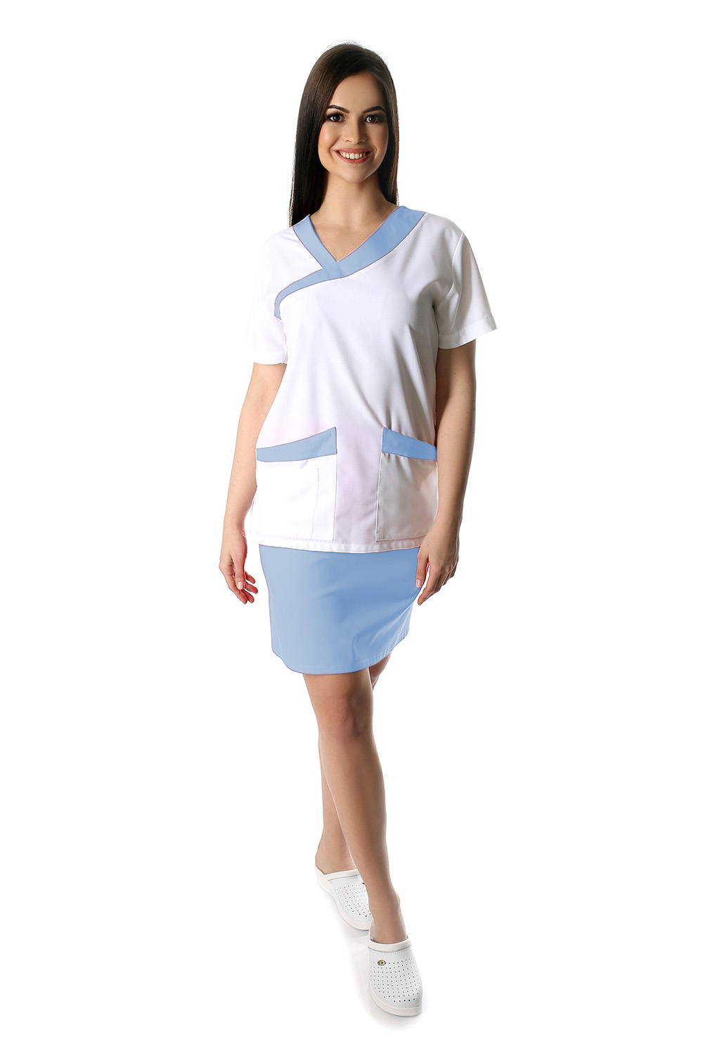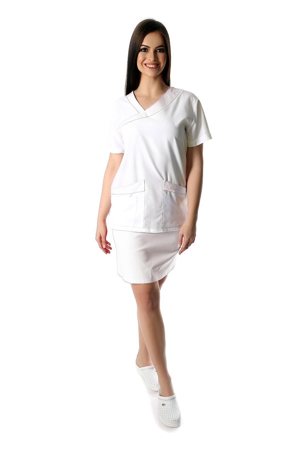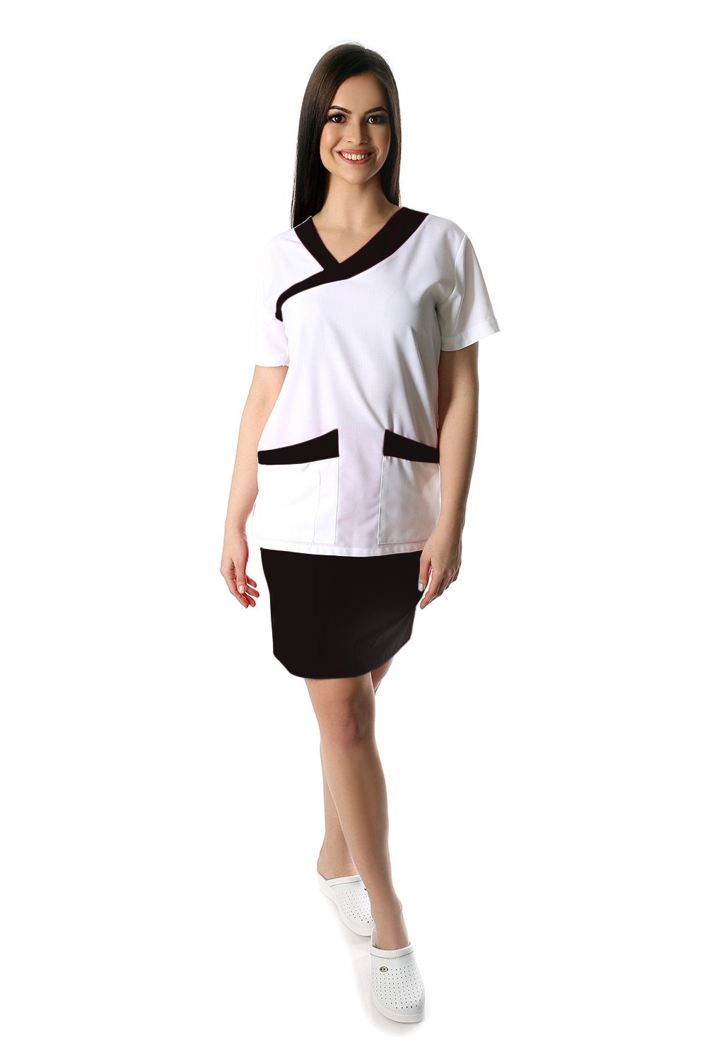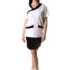 Ez az egyenes szabású, rövid ujjú női munkaköpeny tökéletes választás mindazoknak, akik letisztult megjelenést keresnek praktikus megoldásokkal ötvözve. A bebújós fazon gyors és kényelmes öltözködést biztosít – nincs cipzár, nincs gombolás.