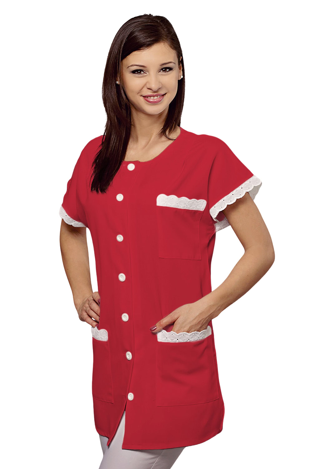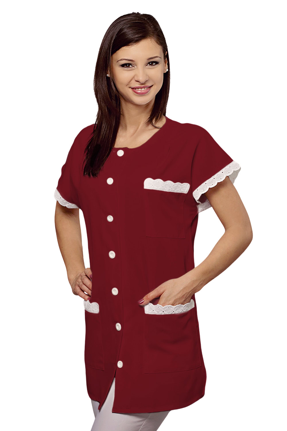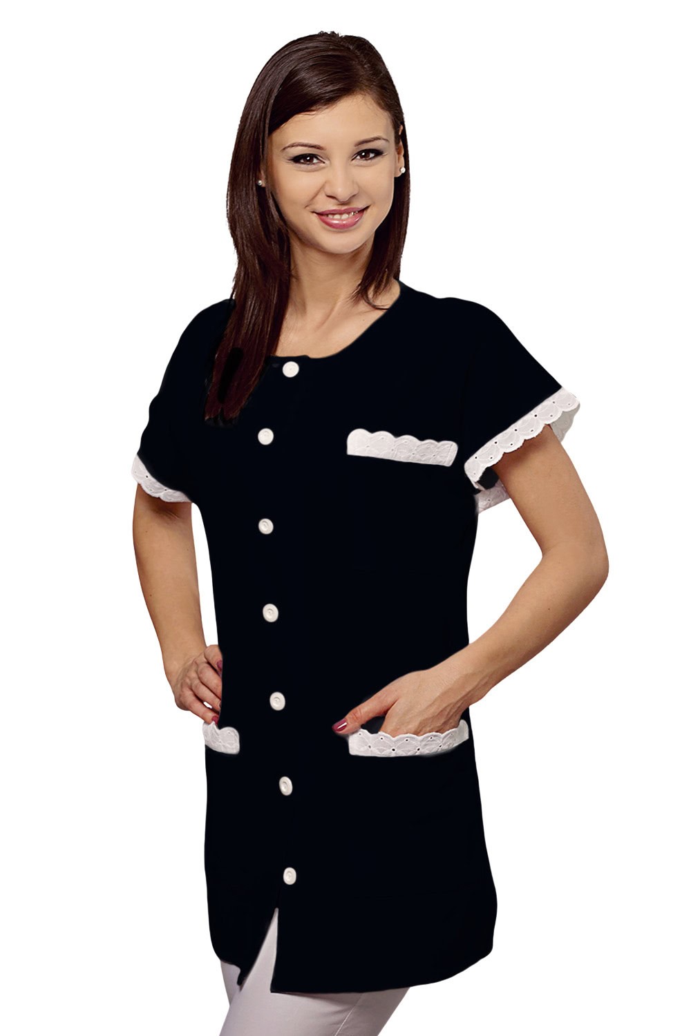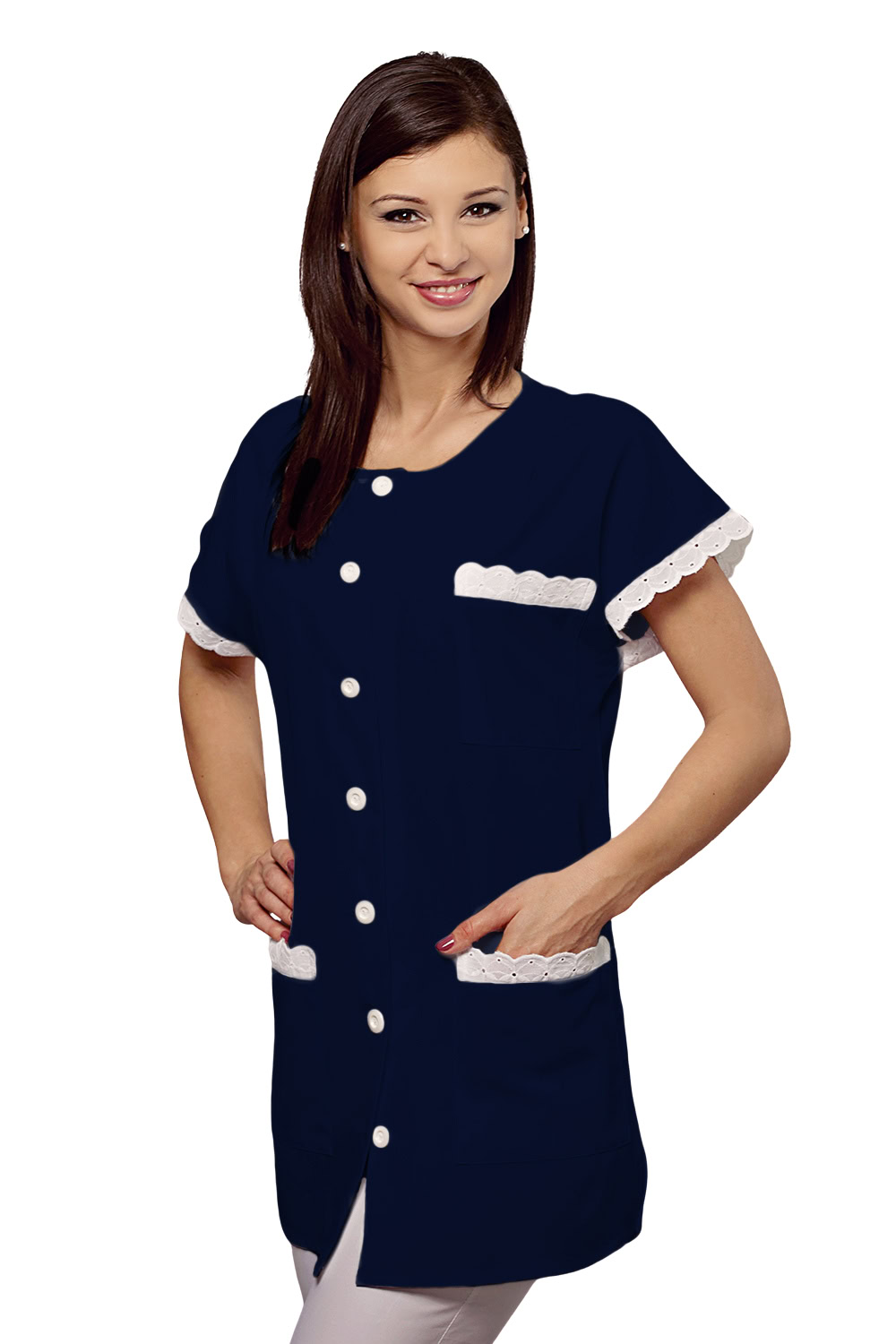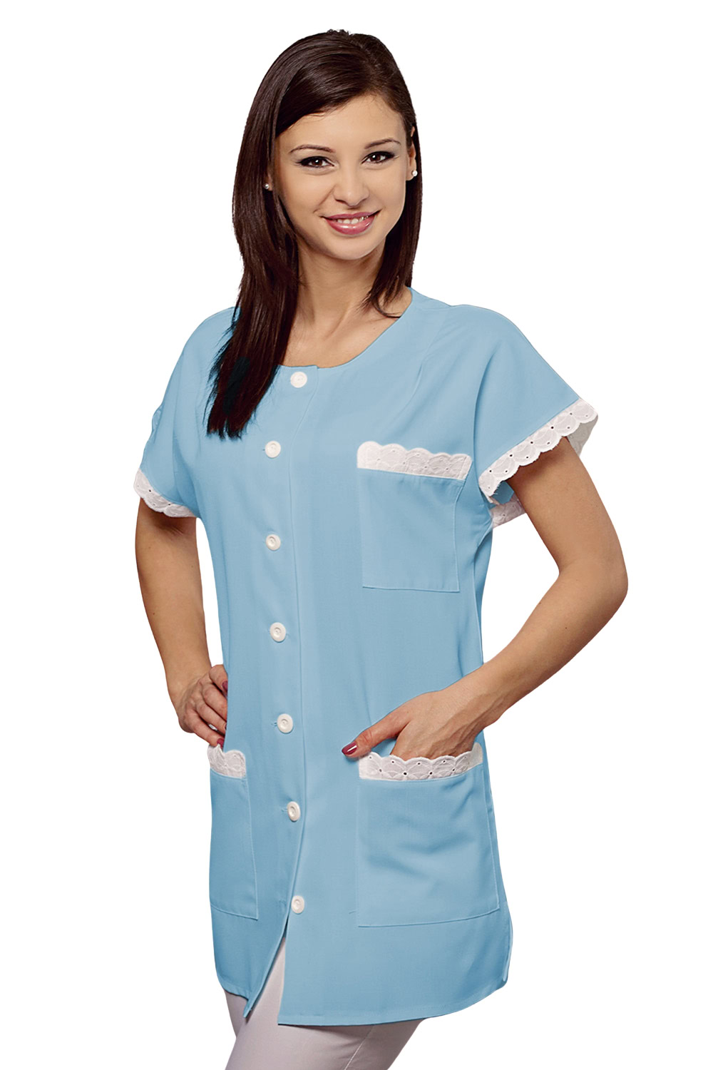 Enyhén karcsúsított női köpeny 127-csipke díszítéssel, gallér nélkül